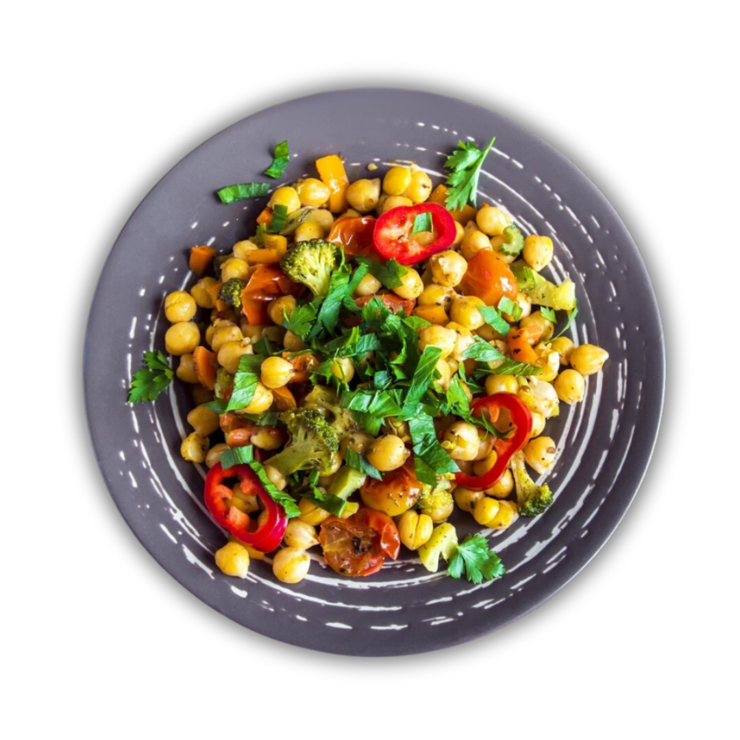 Apresentamos a nossa ‘Salada de Grão de Bico’, um prato leve e nutritivo, isento de glúten e lactose. Este prato vibrante é cuidadosamente preparado com grãos de bico firmes e frescos, combinados com uma variedade de temperos recém-colhidos. A suavidade do azeite extra-virgem se entrelaça perfeitamente com o sabor robusto das azeitonas verdes fatiadas. O cheiro verde, a cebola e a cenoura adiciona.