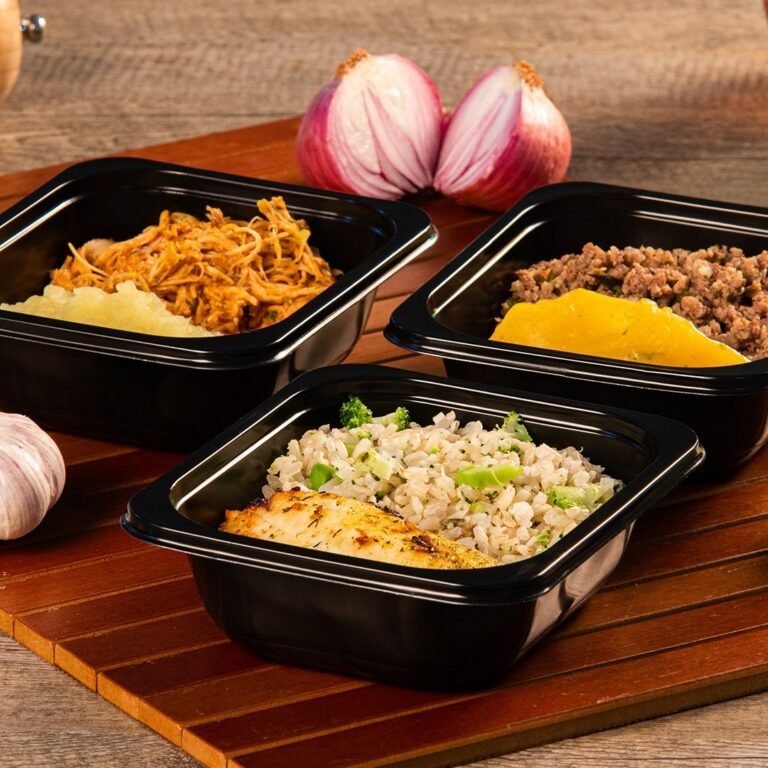 Cada refeição é cuidadosamente embalada em recipientes biodegradáveis e pode ser aquecida no forno ou micro-ondas em apenas 4 minutos.